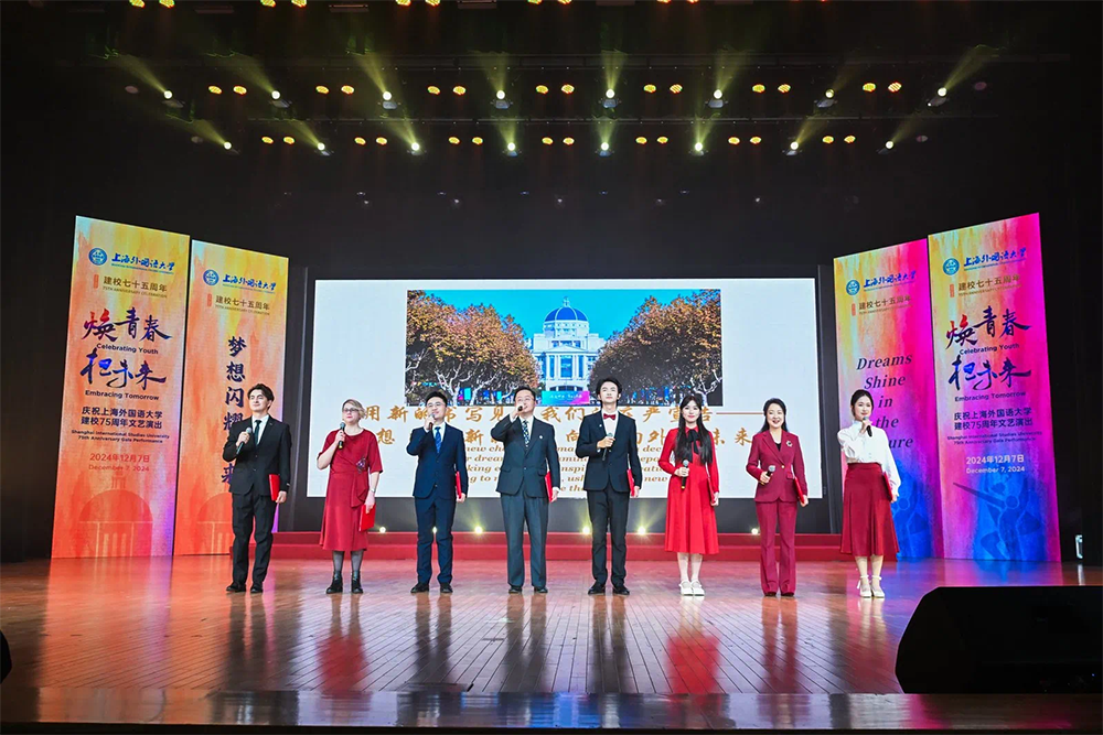 12月7日晚,“焕青春 担未来”上海外国语大学建校75周年文艺演出于松江校区教育会堂举行。