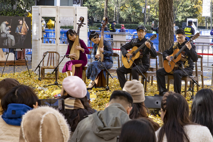 上海六幺琵琶国乐团“上海姑娘”们在音乐会上为市民表演。