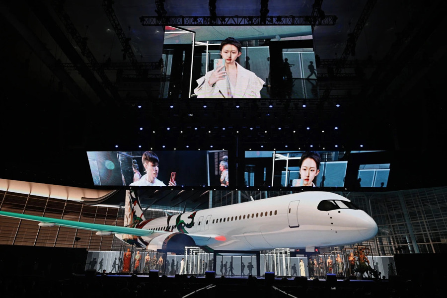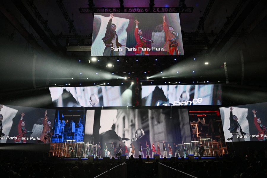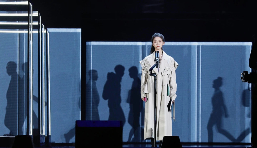 构思《受到召唤·敦煌》时,团队打破时间限制,从1935年在法国的常书鸿先生于战火中奔赴敦煌开始,以百年为纪延伸至未来的2035年,与2035年建成文化强国的战略目标形成互文。