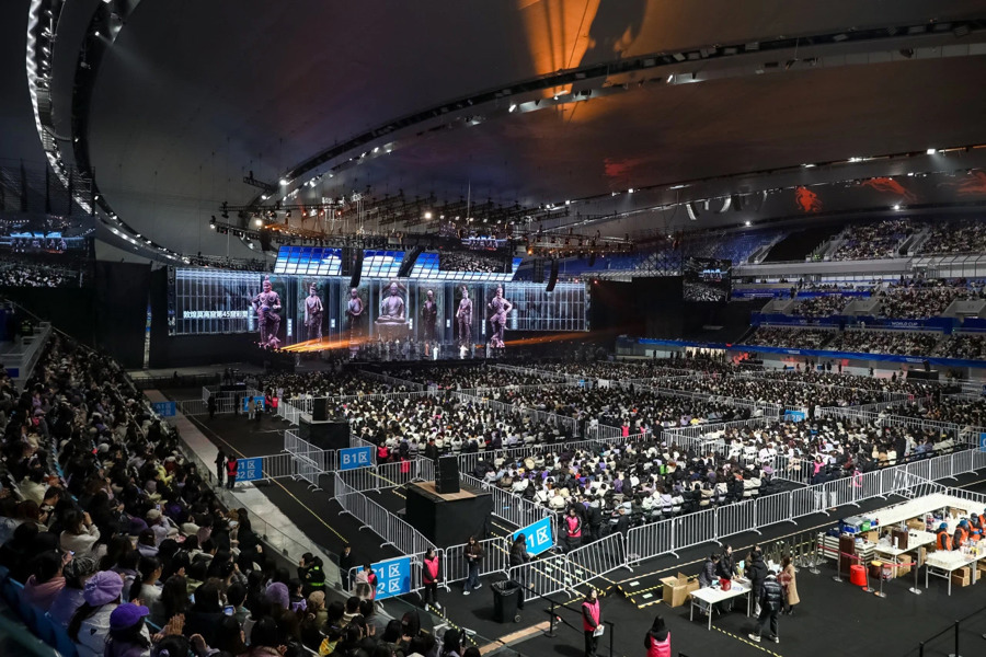 12月7日,由中国国家话剧院院长田沁鑫担任编剧、导演,中国国家话剧院青年演员张艺兴主演的音乐话剧《受到召唤•敦煌》首演,国家速滑馆“冰丝带”座无虚席。该剧在北京演出至9日,12月13日至15日将转战上海奔驰文化中心。