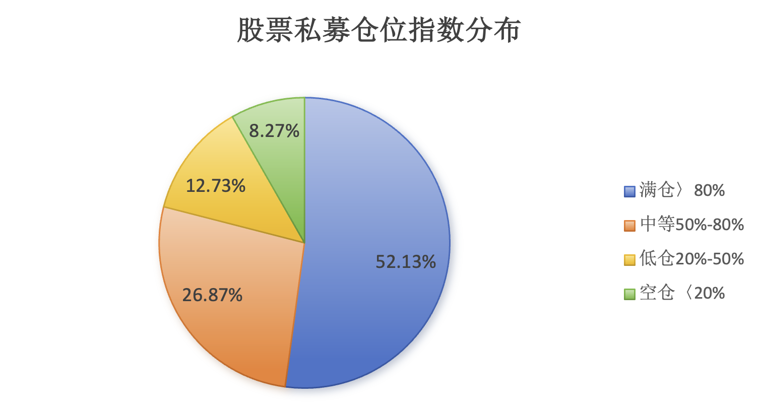 与此同时,满仓股票私募占比过半。私募排排网数据显示,截至11月29日,52.13%的股票私募仓位处于满仓水平;26.87%的股票私募仓位处于中等水平。