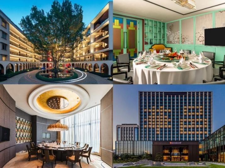 从左至右顺时针:广州海心沙英迪格酒店&独立包厢;北京西南华邑酒店&彩丰楼中餐厅
