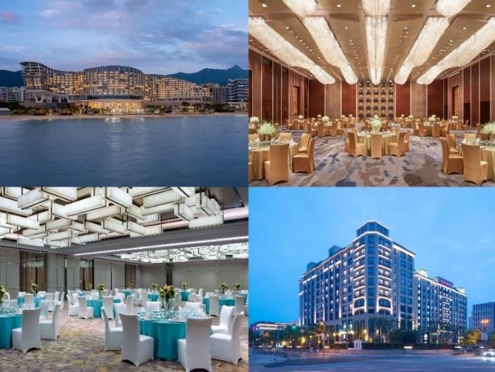 从左至右顺时针:深圳大梅沙京基洲际度假酒店&宴会厅;上海建工浦江皇冠假日酒店&宴会厅