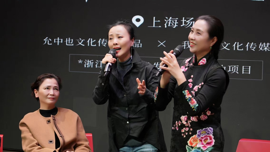 陈辉玲喜欢李燕华设计的唱腔,“非常好听。”她打趣洪瑛、朱丹萍也被唱腔迷住了,“每次排练,我在演,他们两个在旁边跟着唱,我都烦死了,能不能让我好好唱一唱。”现场观众被陈辉玲的回忆逗笑了。“我们三个女人真是互相帮助、互相监督,深夜还在探讨怎么演。大家的建议叠加起来,都想把剧做好,特别兴奋,特别开心,从创作氛围来说是从未有过的快乐,连吃盒饭也快乐。”