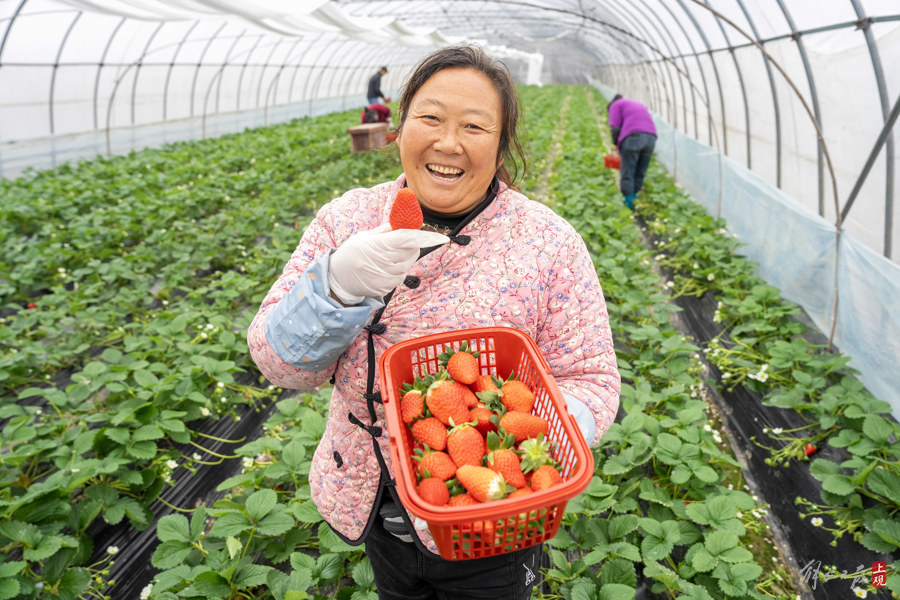 “还有啥好讲的,这草莓都快我脸一半大了,绝对顶呱呱!”清晨6点,陈大姐和姐妹们乐得合不拢嘴。她和几位河南老乡在这片草莓种植基地务工已有十年,最忙碌的时候就是草莓收获季来临,意味着每天都有“高收入”。
