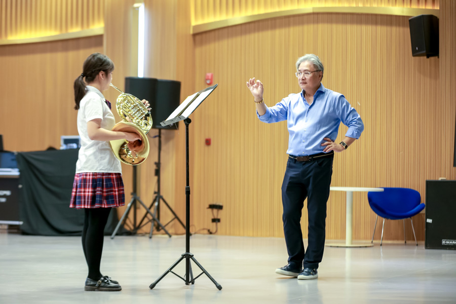 记者:刚刚的大师班上,你对学生们说:“交响乐是集体的交响,首先要学会聆听,不要自己吹自己的”“大家的心要融在一起”。现在的学生缺乏合作精神吗?