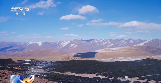 总台央视记者 古峻岭:整个光伏电站一共有25万块光伏板,从空中俯瞰,就像是世界屋脊上的一片蓝色光伏海,迎接着每天的第一缕阳光,把它转化成绿色的电能送往千家万户。