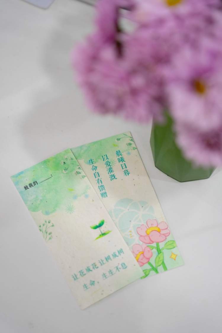 工作人员引导逝者家属,在以种子再生纸为材质的祈福卡上,亲手写下对亲人想说的话,表达缅怀的同时,也以种子再生纸“回归自然 生命再续”的寓意,寄托对亲人的美好祈愿。在福寿园原创仪式音乐——《未完的旅程》轻盈舒缓的旋律中,可降解骨灰盒由亲属安放到生态福位,正如歌中所唱的”一草一叶一花一蝶,都只若初见”,自此生命“与自然共生,与天地同眠”。《未完的旅程》是福寿园结合当下的音乐疗愈,首次创作的专属仪式音乐,未来将用于全集团的追悼、追思、安葬和纪念活动,为逝者送行,给生者慰藉。