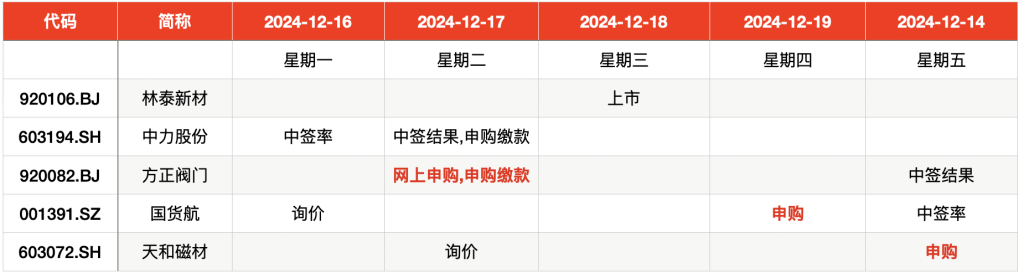 本周二,方正阀门开启申购;国货航、天和磁材则分别在本周四、本周五申购。