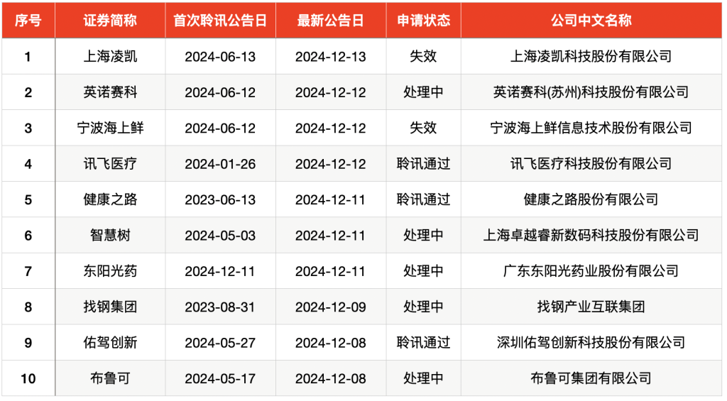上周,港股有5家企业递交招股书,其中,广东东阳光药业股份有限公司为首次递交;英诺赛科(苏州)科技股份有限公司、上海卓越睿新数码科技股份有限公司、找钢产业互联集团、布鲁可集团有限公司为更新招股书。讯飞医疗科技股份有限公司、健康之路股份有限公司、深圳佑驾创新科技股份有限公司等通过聆讯。