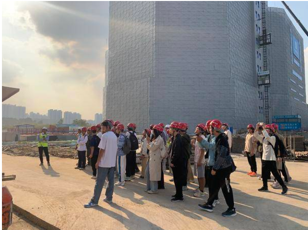 在现场观摩环节,现场经理程庆宇、陈浩男分别带领师生一行深入施工现场,结合具体场景详细介绍了项目的整体概况、施工进度及技术应用与创新亮点。在讲解过程中,师生们积极发问,就施工组织、难点攻克、工程技术等方面进行了深入探讨。项目团队基于实际施工经验,耐心细致地解答了问题,并分享了现场管理与技术应用的关键要点。