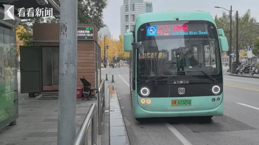 12月13日周五,上午8点多,正值工作日早高峰时段,记者来到龙门路淮海中路公交站,搭乘42路小型公交车,前往宜山北路虹桥路站。与常规公交车相比,小型公交车车内空间较小,座位仅有12个。