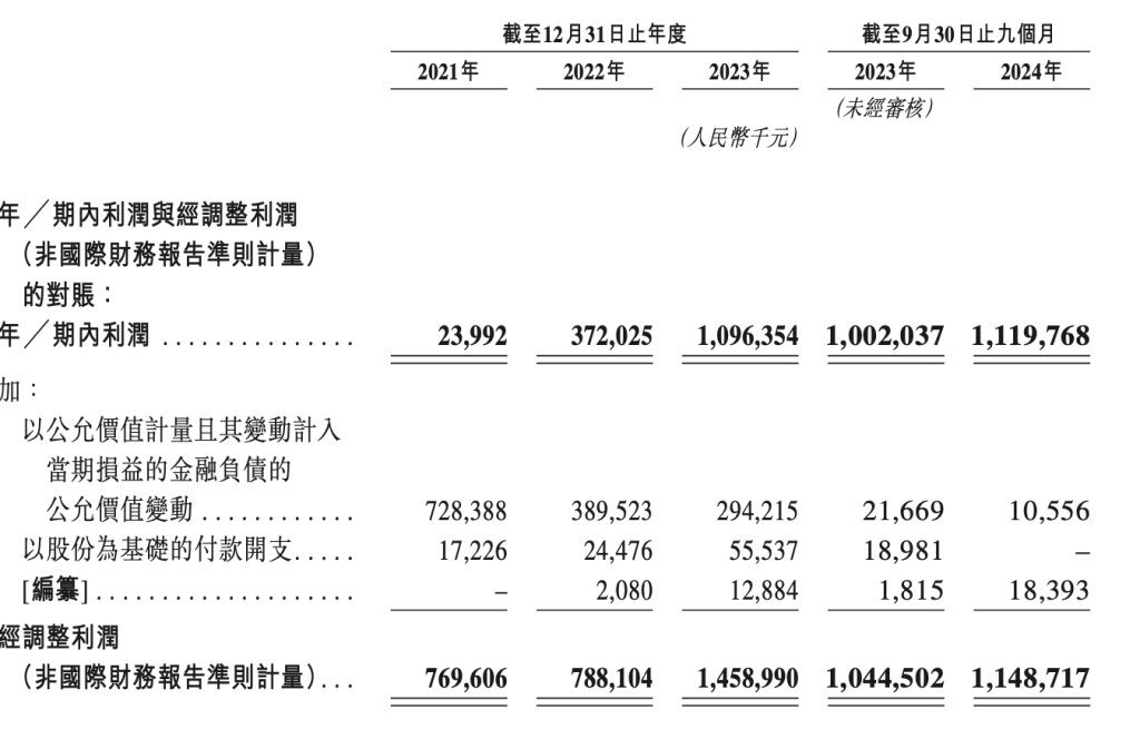 利润方面,2021年、2022年及2023年年度利润分别为0.24亿元、3.72亿元及10.96亿元;经调整利润(非国际财务报告准则计量)分别为7.7亿元、7.88亿元及14.59亿元。据计算,2022和2023年年度利润分别同比增超14倍和增近2倍。经调整利润分别同比增长2.34%和85.15%。