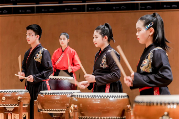 龙与虎,象征着中华民族的力量与骄傲。校民鼓社团带来的鼓乐作品《龙腾虎跃》用激情澎湃的鼓点展现了奋进的精神与卓越少年的自信。