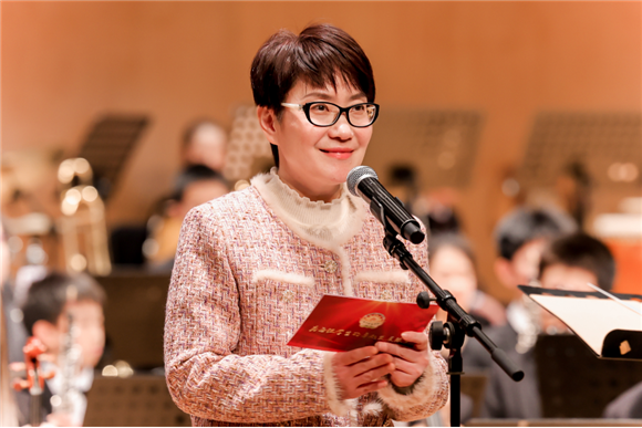 上海市进才实验中学盛红校长为本次活动致辞。盛校长回顾了学校艺术教育的发展与成果,由衷感谢各级领导的关怀和社会各界的支持。作为全国百强艺术品牌学校,上海市艺术特色学校,学校对应新时代、新课程、新理念教育发展战略,以"让孩子们拥有一百个世界"为课程理念,构建"卓越艺术社团"。以乐团、社团为平台,给学生提供展示自我、修身立德、丰富内涵、温润人生的演练场,文化共融,艺术共享,用向美向上向善的价值追求,用良好的礼仪素养、深厚的艺术底蕴、创新的艺术构想,锤炼品德、完善人格、塑造心灵,做德才并重、情理兼修、勇于开拓、堪当民族复兴重任的时代新人。