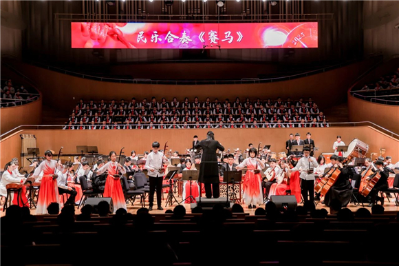 由上海市进才中学、进才实验中学、进才中学北校、进才森兰实验中学四校民乐团共同演绎民族管弦乐《赛马》,以其磅礴的气势、热烈的气息、奔放的旋律为我们展现了一幅生动热烈的赛马场面。