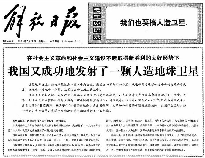 星箭发射成功,喜传捷报。中共中央、国务院、中央军委很快发来贺电。《人民日报》头版头条刊登这一特大喜讯。
