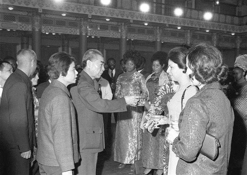 1972年12月12日,周恩来出席非洲国家驻中国使节举行的招待会。 新华社发