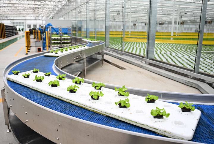 2024年12月12日在内蒙古鄂尔多斯市达拉特旗内蒙古现代数字农业科技产业园拍摄的生菜苗。新华社记者贝赫摄