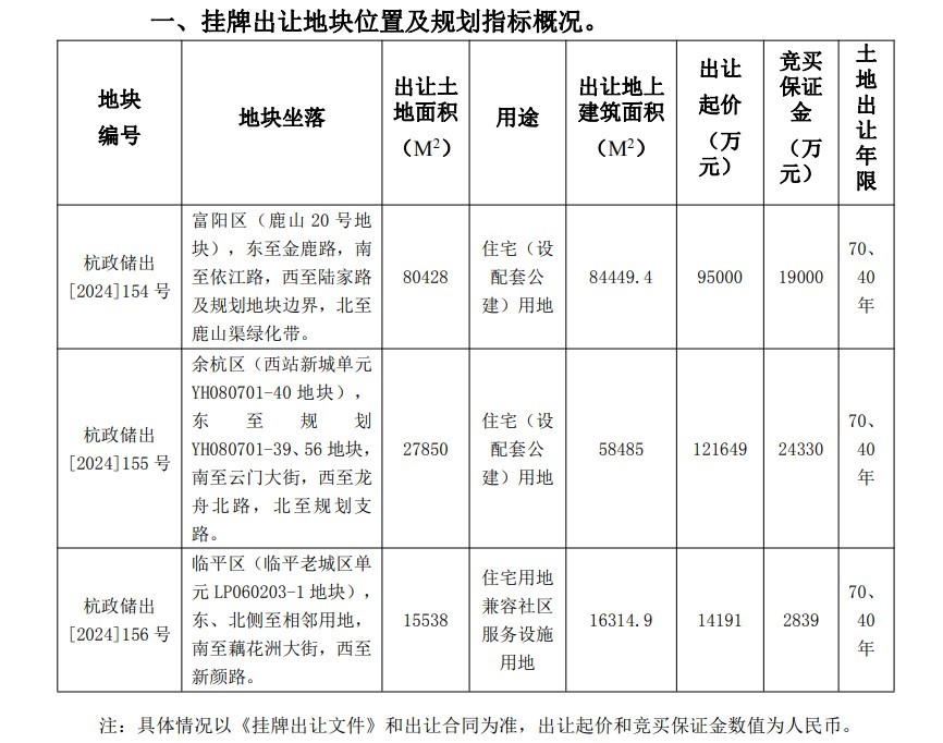 根据地块出让信息,此次出让的3宗地块分别位于富阳区、余杭区、临平区,地块实行自由竞价,按照价高者得的原则确定竞得人。