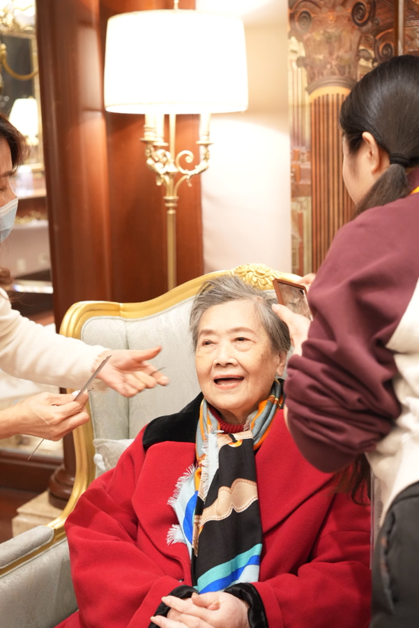 “一条大河波浪宽,风吹稻花香两岸。”88岁的歌唱家朱逢博,在众人的簇拥下登上上海音乐厅的舞台,唱起了《我的祖国》。一头银发的她穿着红色的大衣,眼含笑意,光彩夺目。身后,82岁的老友屠巴海指挥起上海轻音乐团的乐手们奏出动人的旋律,观众席沸腾了。