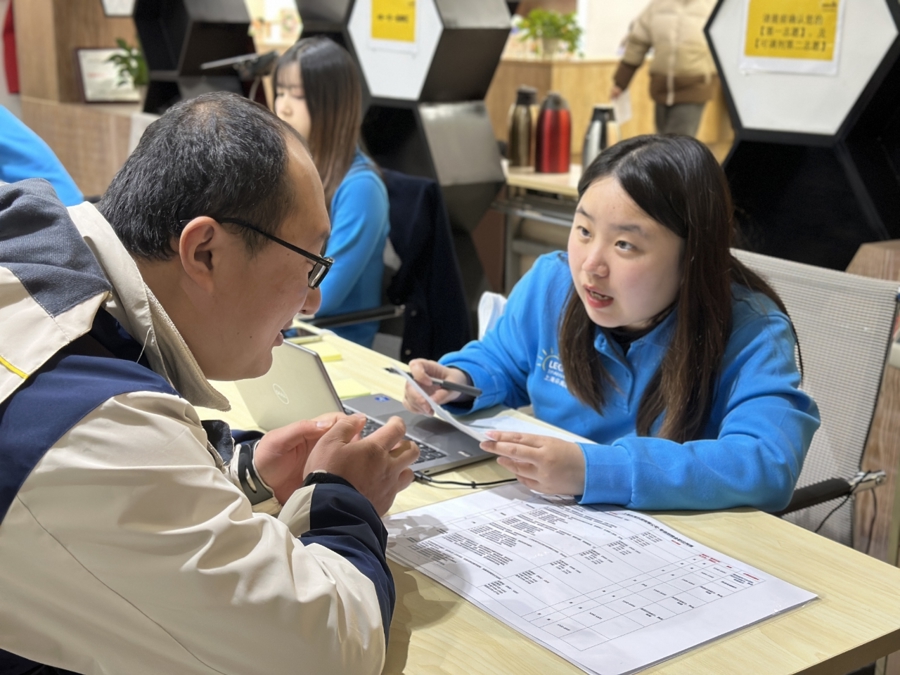 前期,人社部门就已通过短信,按照不同时间段对线上报名的求职者进行面试邀约。求职者们在面试当天按照短信通知时间,早早抵达现场等候,有序进行面试。“这个岗位发展空间如何”“福利待遇怎么样”“一个月休息几天”……招聘会现场气氛热烈,前来咨询岗位详情以及投递简历的求职者络绎不绝。招聘会现场,指引分流的“红马甲”志愿者与耐心回复的“蓝T恤”乐高工作人员也成了一道风景线。