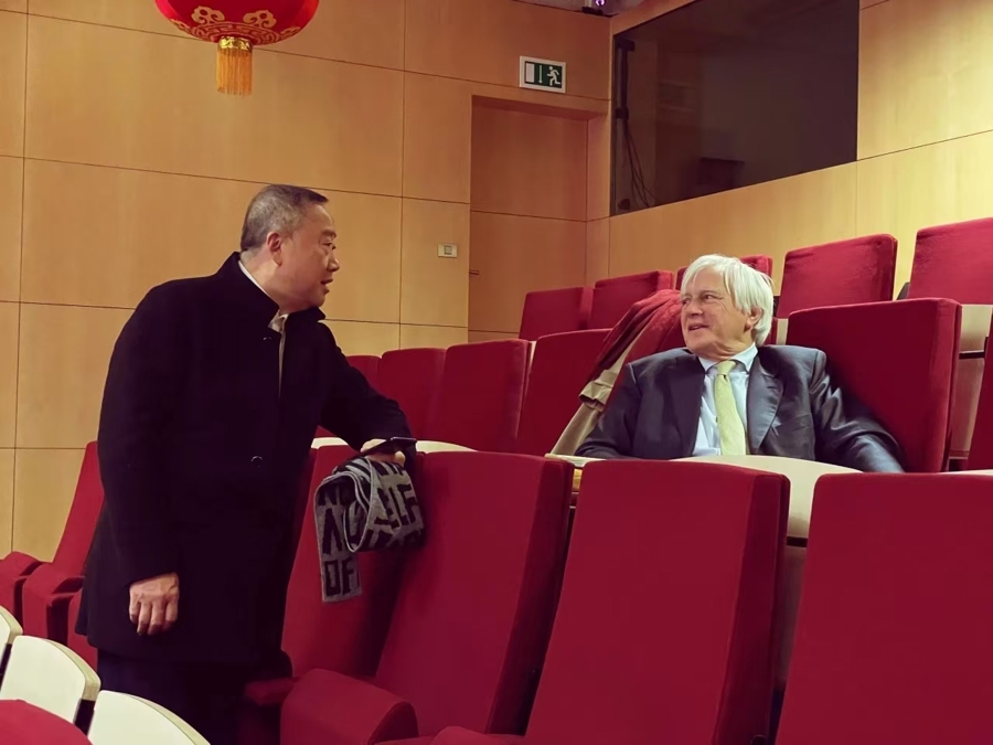 活动开始前,滕俊杰与比利时欧中视听传播中心负责人交流
