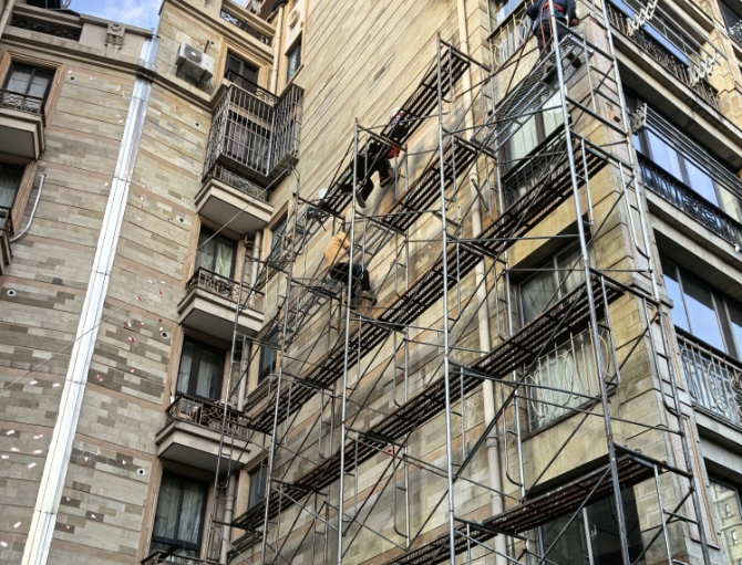 制定维修方案不难。6号楼居民成先生和热心邻居咨询了专业人士后,发现搭建简易脚手架开展人工排查最可行——不用昂贵的红外探测,只要手动敲敲外墙,听声音就知道有没有空鼓,会不会掉落。脚手架搭到哪里,人工排查就进行到哪里,一旦发现问题,就把有问题的墙砖打掉,重新贴。