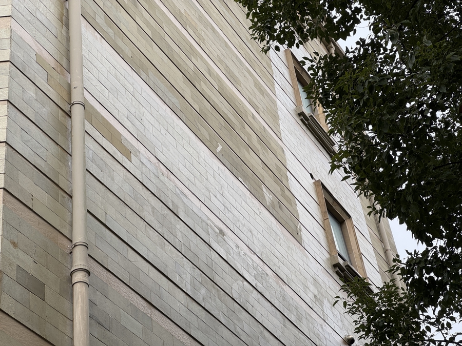 现在,雍景苑4号楼、6号楼已维修完毕,装了多年的脚手架、防护棚也随之拆除。居民反映,未再发生外墙脱落的情况,也不再漏水。记者在楼下观察,通过色差可以推断,一面墙大约有1/3的砖重新贴过。