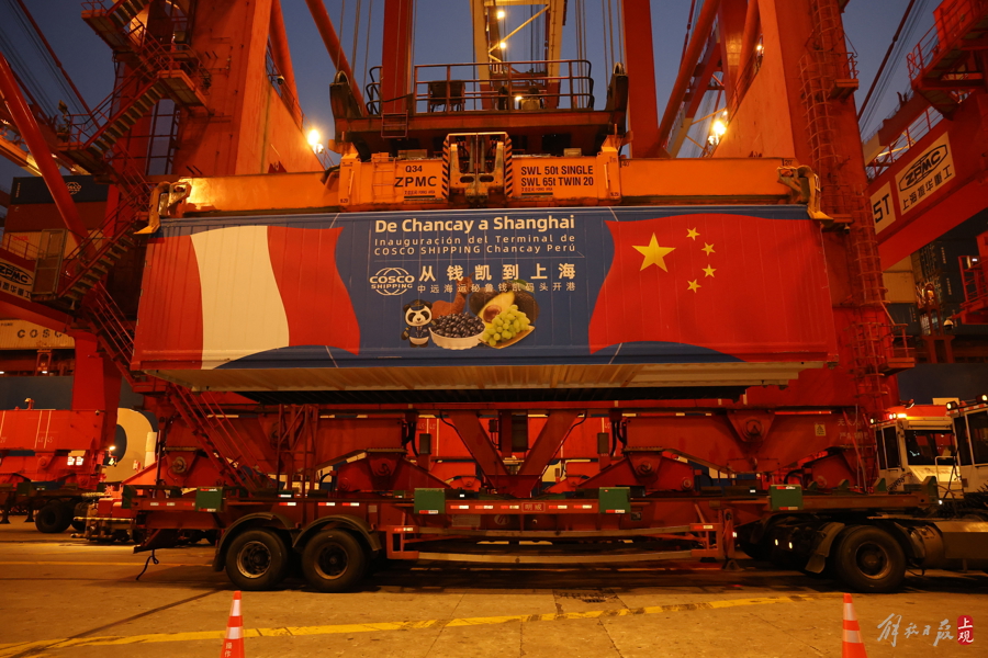 秘鲁钱凯至上海洋山航线首航,带回蓝莓、牛油果等特色水果