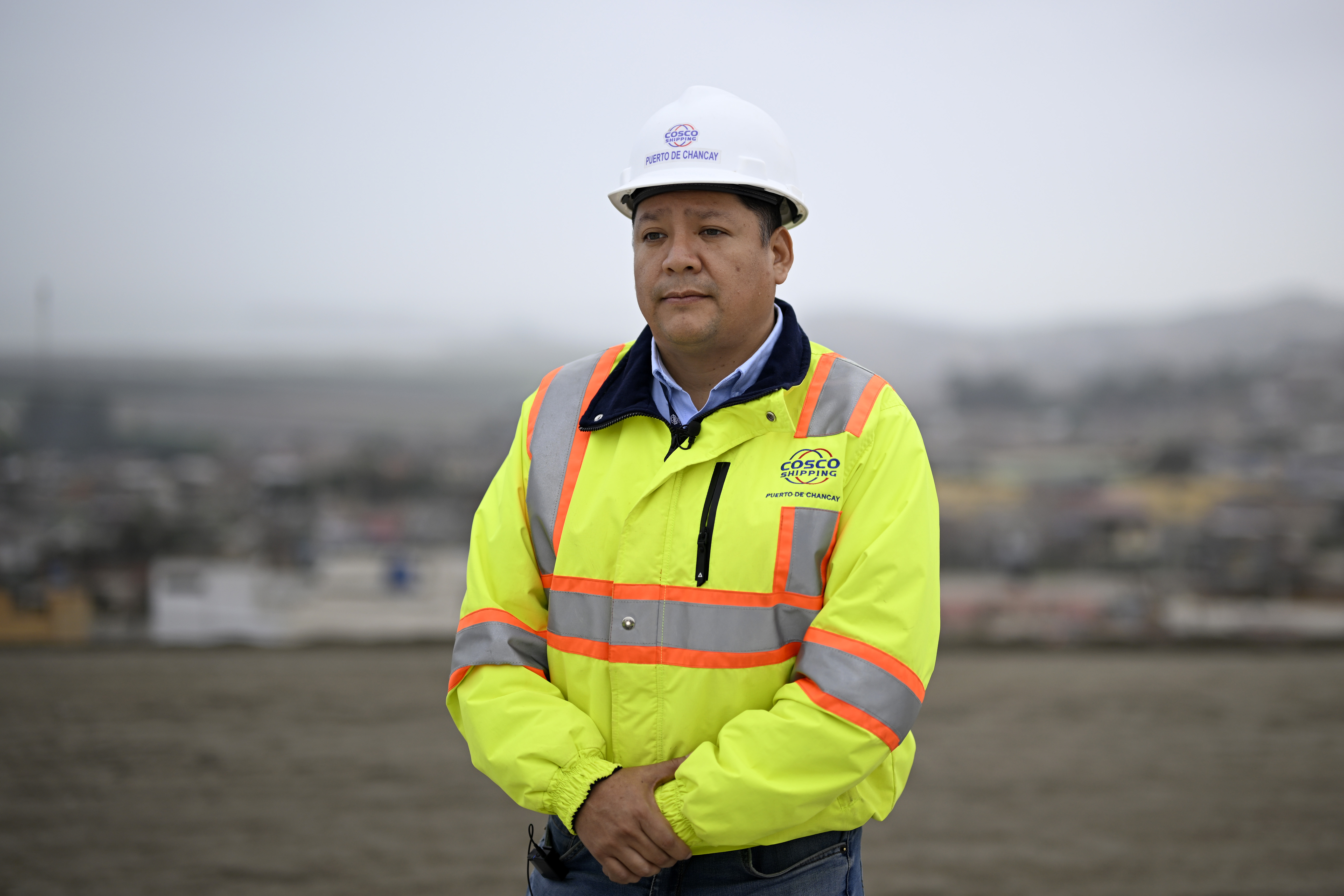 ↑6月21日,在秘鲁钱凯港,钱凯港项目工程部副经理戴维·加梅罗接受新华社记者采访。