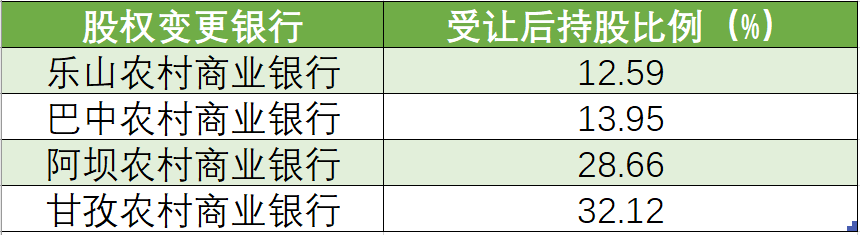 同日,四川农商联合银行还获批受让4家农商行股权。