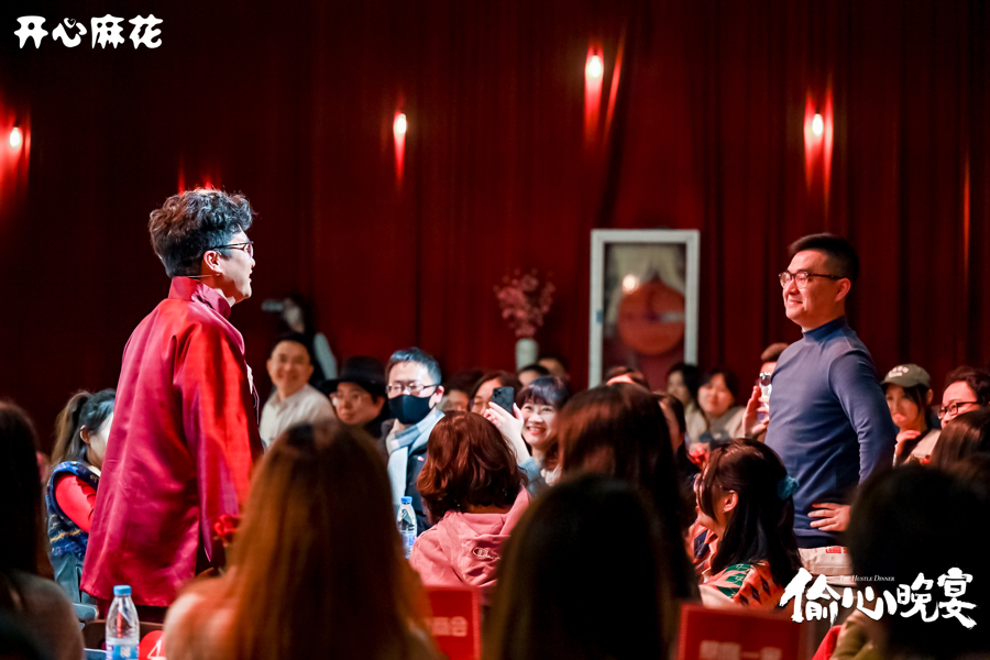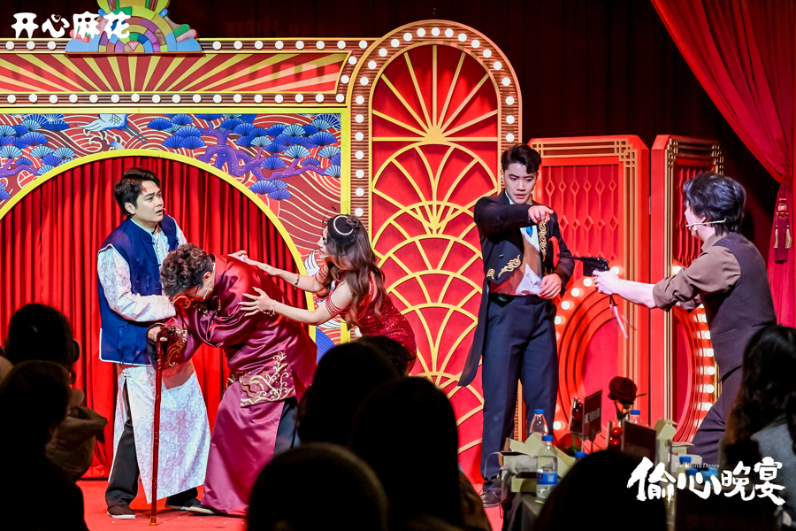驻场演出《偷心晚宴》成为大三角剧场开幕大剧。该剧以“好看、好吃、好玩”为最大特色,整个故事设定在敖二爷的寿宴上,观众被赋予宴席嘉宾的身份。剧情涉及兄妹相争、现场招婿、假冒投资商登场、真投资商出现等多重反转。观众不仅能欣赏表演,还能参与到剧情中,体验“大家一起玩”的氛围。作为一部“带餐喜剧”,《偷心晚宴》满足了年轻人边吃边看的消费诉求。