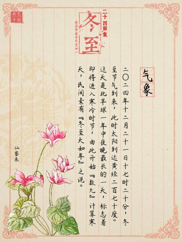2024年12月21日17时20分,冬至节气到来,民间也由此开始“数九”计算寒天。