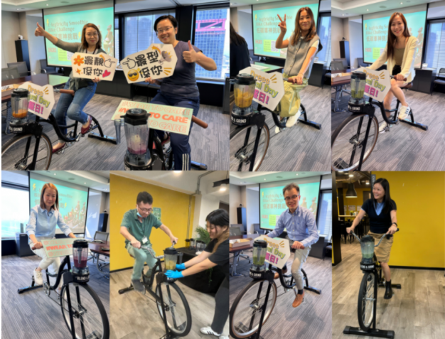 集团位于香港的多个办公室举办轻松有趣的“低碳车神挑战”。参与者通过脚踏特别改装的定点单车,通过动能转化将新鲜水果和健康食材搅拌成特制冰沙,为员工带来独特的低碳体验,不仅起到推广健康饮食和运动精神的作用,也让员工感受可再生能源的优点。