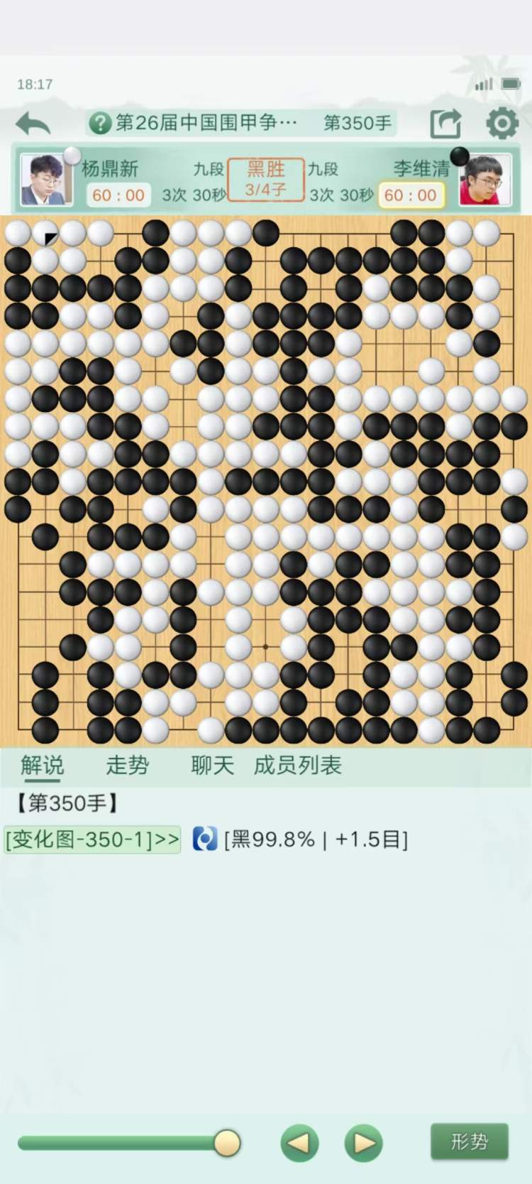 四台:李维清九段 执黑 胜3/4子 杨鼎新九段(快棋)