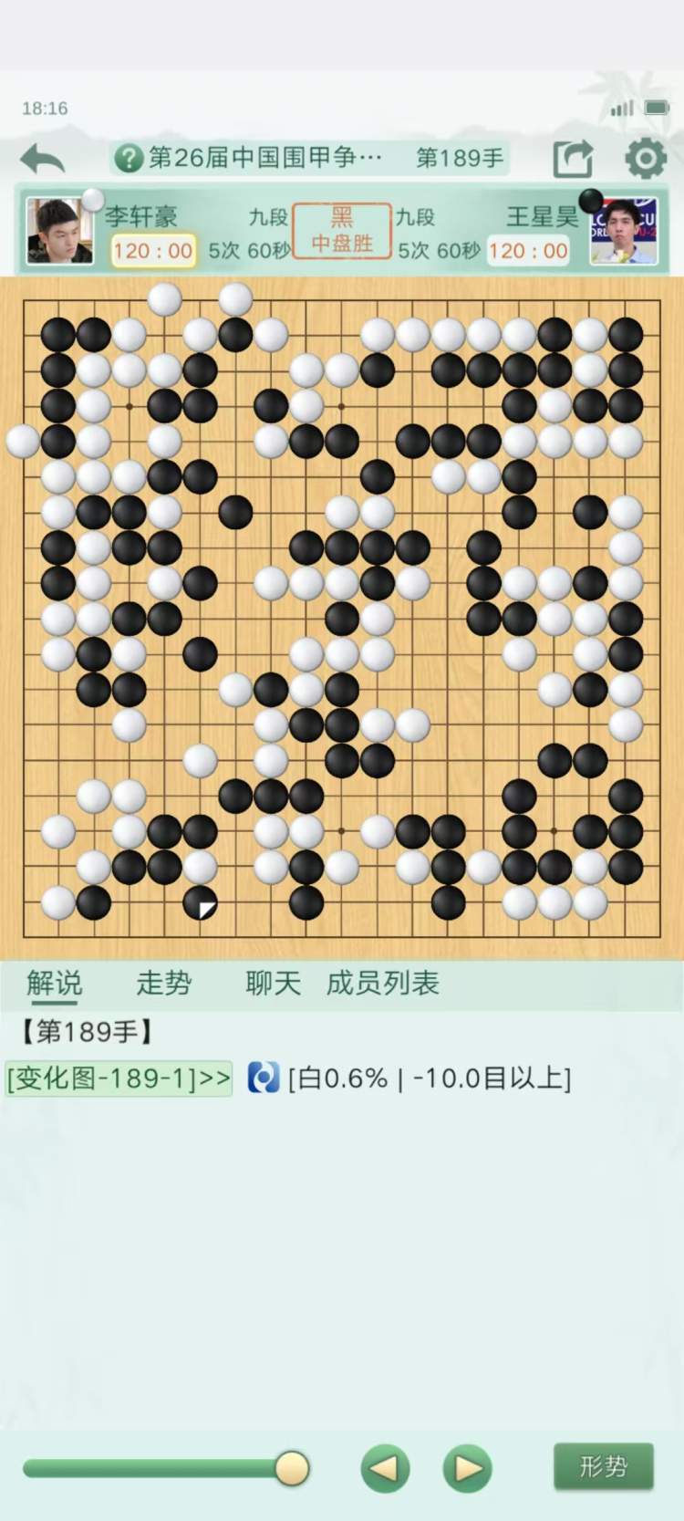 二台:王星昊九段(主将) 执黑 中盘胜 李轩豪九段