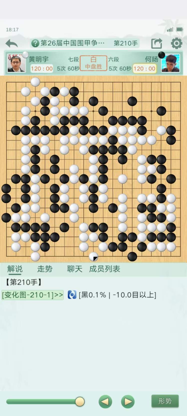 三台:黄明宇七段 执白 中盘胜 何旸六段