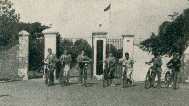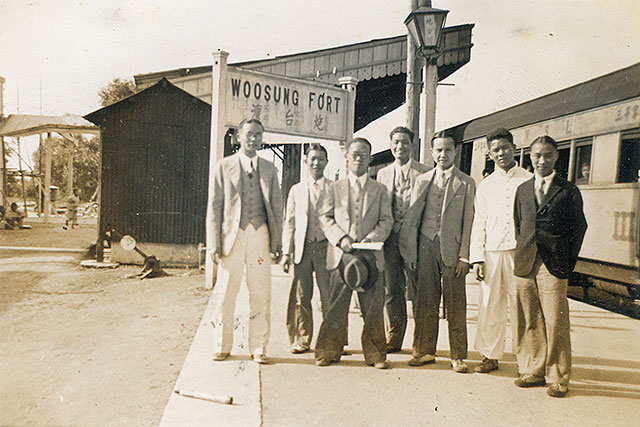 我细看这些老照片:青年身穿休闲西装,头势清爽,或站立、或骑跨租来的自行车。看不清他们的表情,但能感觉到那份神采——自信洒脱,英气逼人。在他们身后,是炮台湾车站,是吴淞水产学校,是气派的中国公学,以及近百年前的宝山旧县城。隔着漫长的岁月,照片有些漫漶不清,像无声的霜雪。