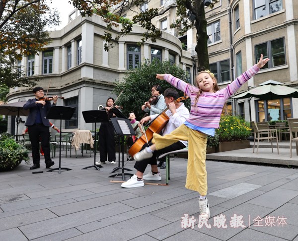 10月28日,香港弦乐团带着根据电视剧《繁花》主题配乐改编的全新作品《繁花金曲串烧》亮相上海国际艺术节“艺术天空”,在弓弦之上重温1990年代流行金曲。音乐会前,乐手在黑石公寓前上演音乐“快闪”。