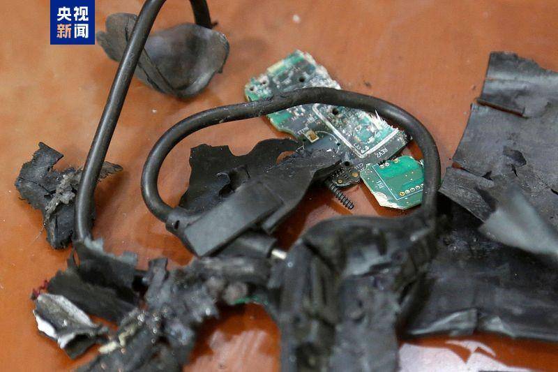△在黎巴嫩贝鲁特南部郊区,爆炸的寻呼机残骸。