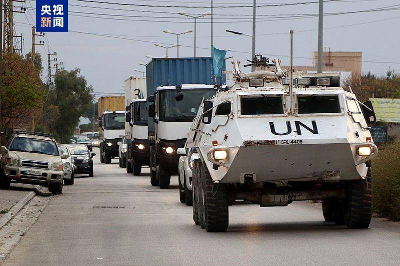 △停火协议生效后,联合国驻黎巴嫩临时部队车队在黎巴嫩南部巡逻。