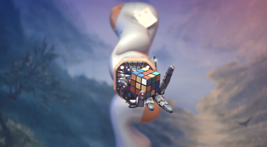 OpenAI在2019年训练机械臂解魔方的视频截图