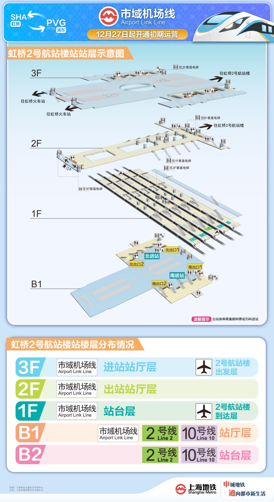 上海轨道交通市域线机场联络线工程(以下简称“市域机场线”)(虹桥2号航站楼站~浦东1号2号航站楼站),将于12月27日(本周五)首班车起开通初期运营。