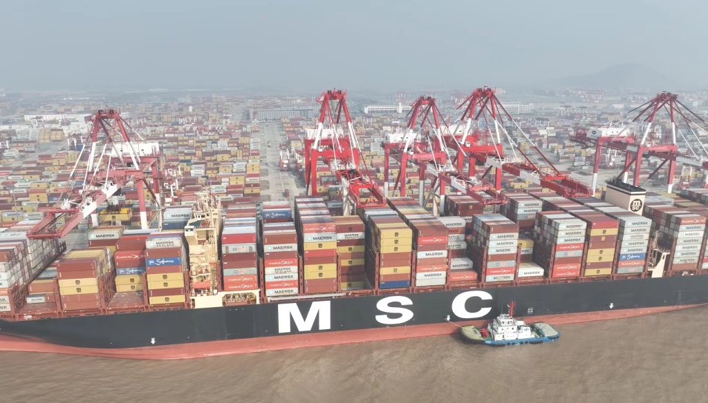“地中海卡里普索”轮成为第一万艘次驶入洋山口岸的国际航行船舶。上海边检 供图
