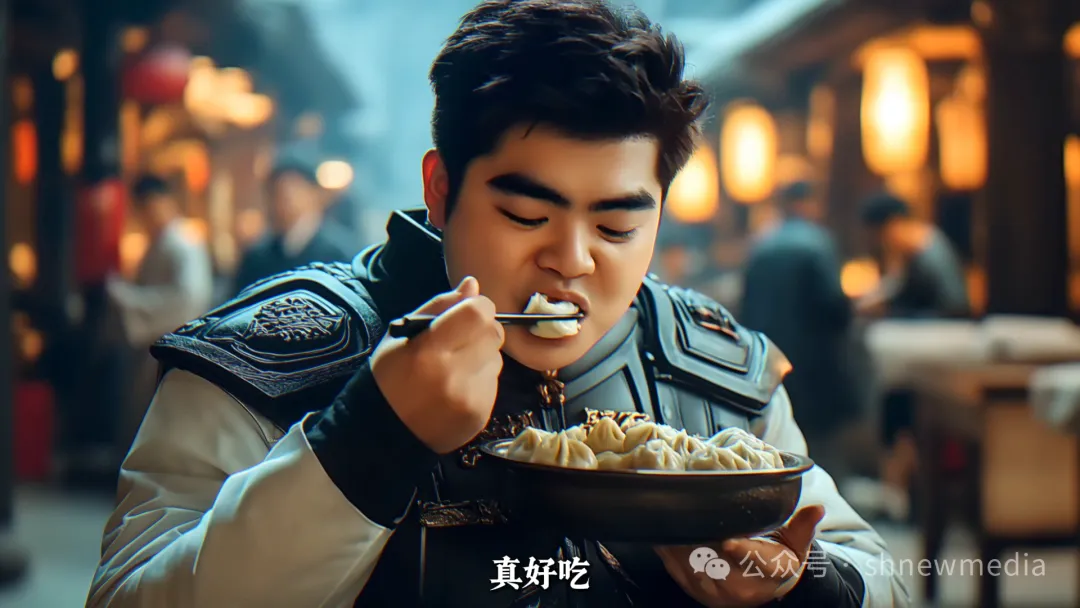 三人坐在热闹的小餐馆里,店小二端上热气腾腾的饺子,三人狼吞虎咽,又要了一盘。“羊肉来啦!”三人又继续吃了起来,“好吃”“好吃”“再来一盘”……