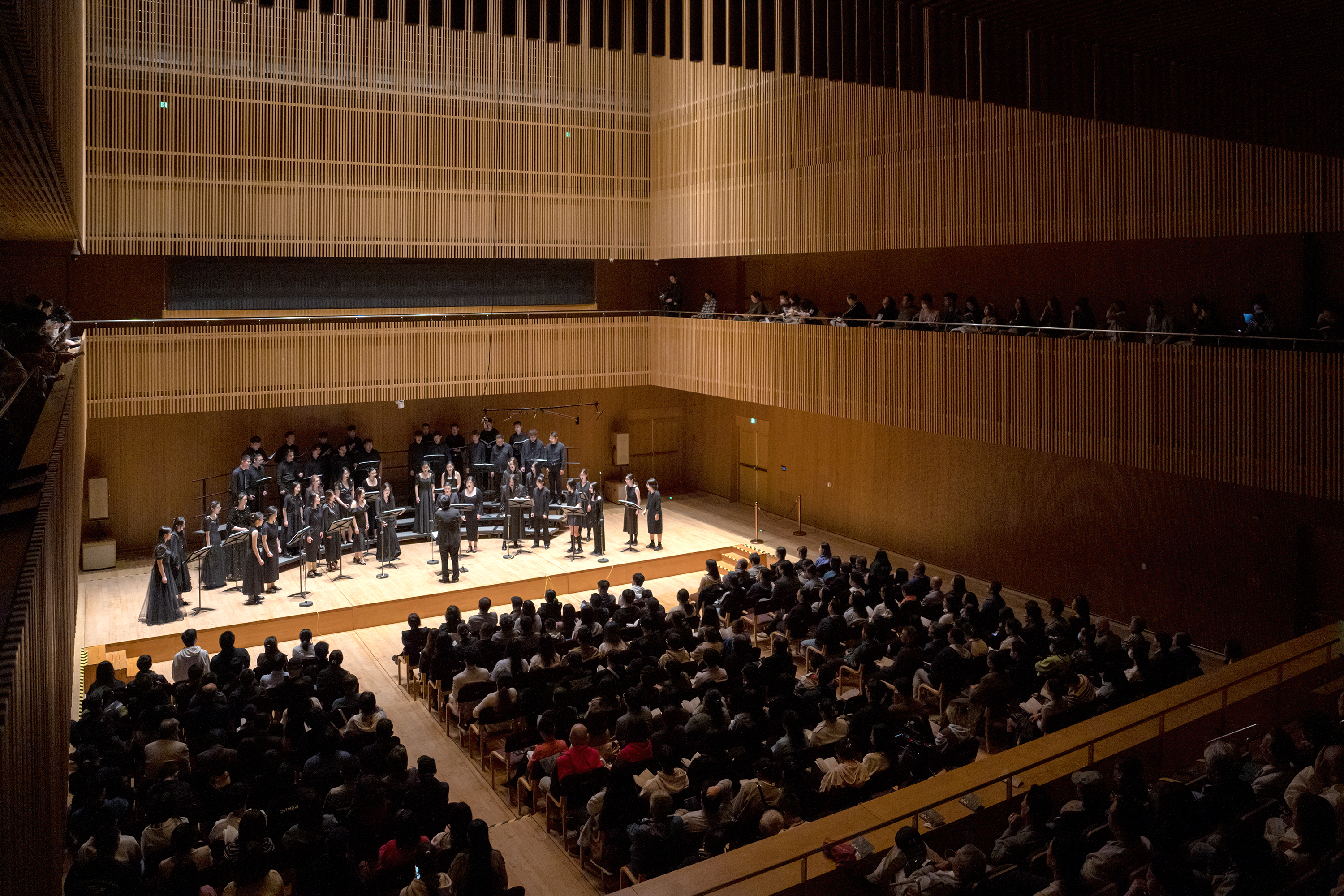 11月的演出则从音乐会演出音乐厅的名字——贺绿汀先生的两首作品《渔父·西塞山前白鹭飞》和《垦春泥》开始,然后是诞辰120周年的黄自先生的两首作品《花非花》《点绛唇·登楼赋》,再到中国合唱百年经典作品《牧歌》。上半场的选曲饱含了流光合唱团不忘传统及其对中国合唱作品的敬意。当然,流光并不止步于经典,接下来演唱的《青海梦》和《小溪》则展示了中国无伴奏合唱作品在“通俗化艺术”道路上的探索与表达。下半场外国作品的选曲则更加呈现 “多元化”的特征。从“乐圣”贝多芬的合唱作品O Salutaris Hostia到当代国际合唱代表作品Sleep,从东欧、西欧、到北欧的民谣,再到美国传统黑人的灵歌,流光努力地展现人声艺术的时空多样性。