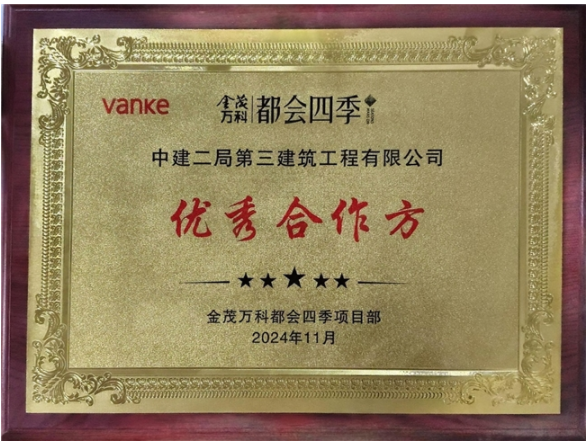 近日,中建二局三公司华南分公司金茂万科都会四季项目先后收获了业主颁发的优秀合作方奖牌和表扬信,对金茂万科都会四季项目部在过去一年里科学管理、全力以赴、积极履约取得的优秀成绩表示赞许。