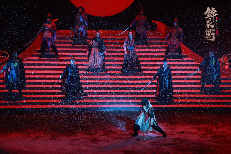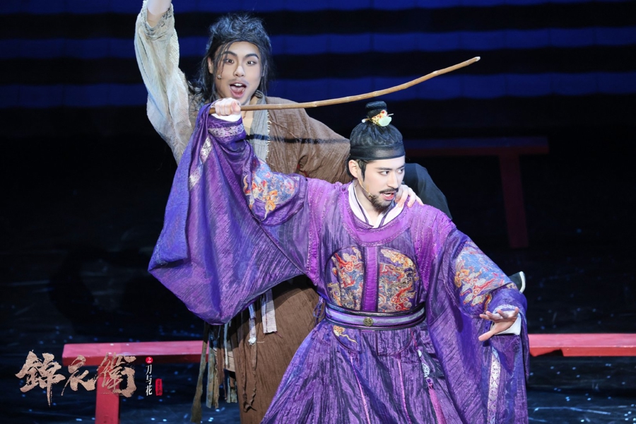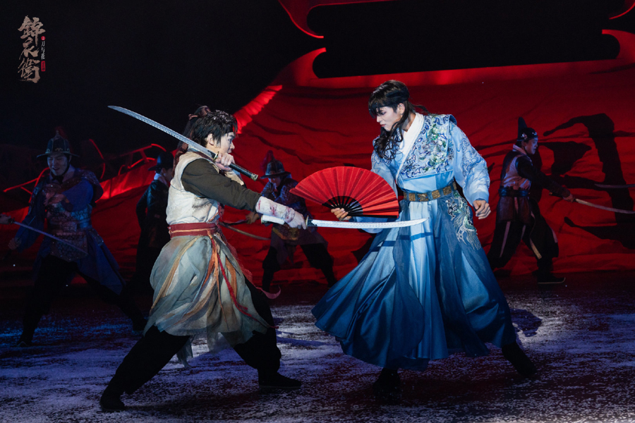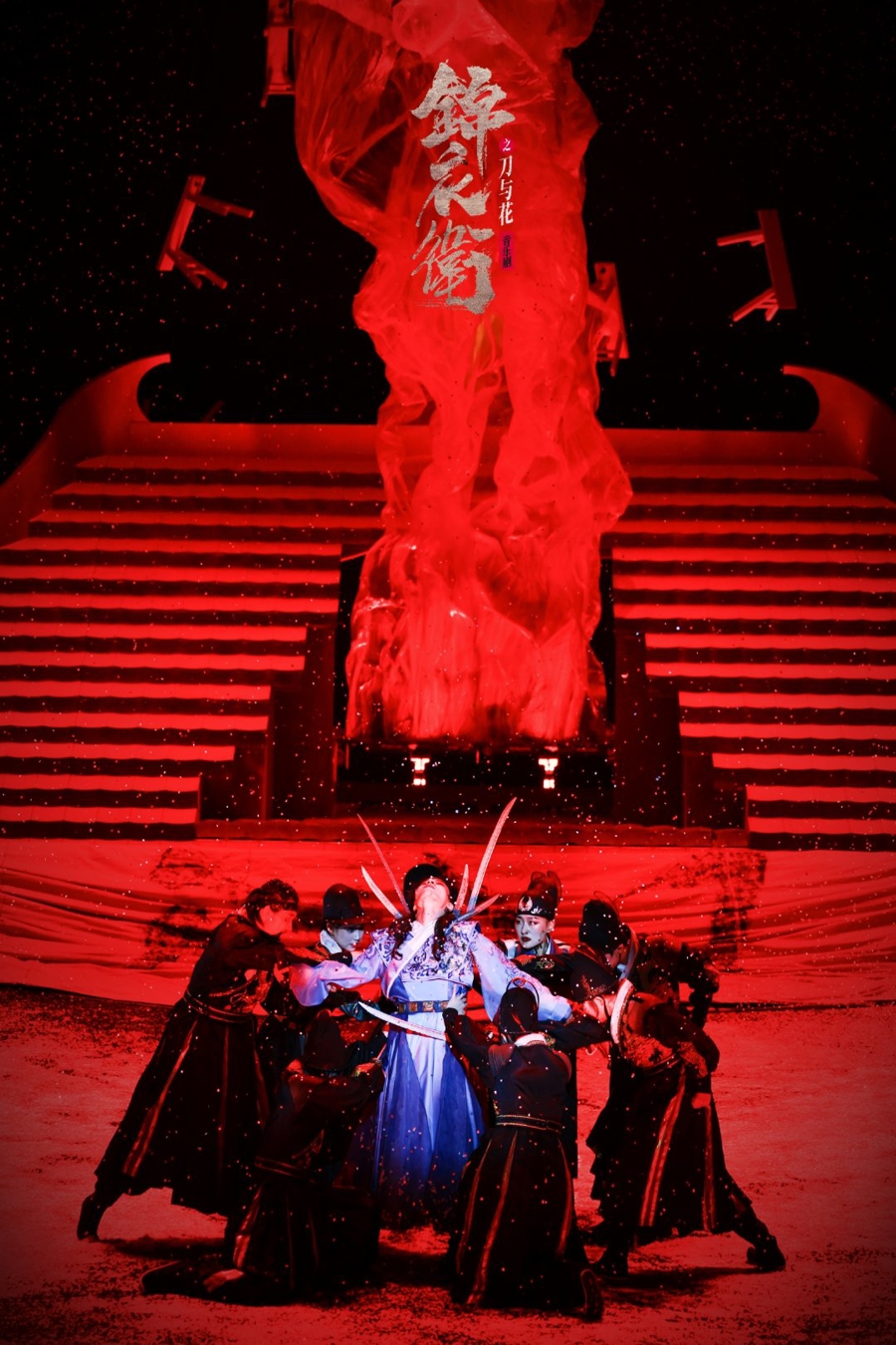 正值年末,一股红黑色调掀起新国风音乐剧浪潮,《锦衣卫之刀与花》(以下简称《锦衣卫》)执子入局,吹皱了上海音乐剧市场。