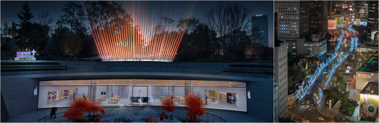 “闪亮・静安”光影购物SHOW借光影打造沉浸式消费场景,赋能静安多个核心商圈,联动上海国际消费中心城市的特色IP——“五五购物节”,拉动文旅消费,促进城市夜经济增长;同时与“静安音乐节”创新结合,为人们打造出一场视听结合的艺术盛宴。